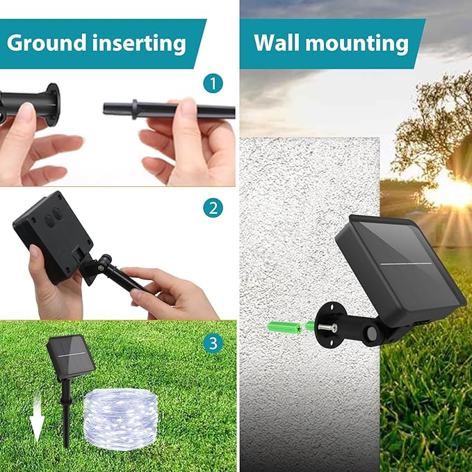 - Auto On/Off & Energy Saving: Solar powered fairy lights automatically charge for 6-8 hours during the day, and automatically turn on for 8-10 hours at night. No manual operation required, more convenient and simpler. Solar charging, no electricity bills, adding economical and beautiful decorative lights to the garden