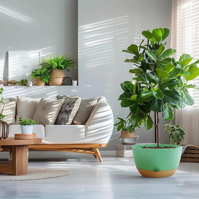- 【Morden Minimalist Appearance】Koalaime large self watering pots have a matte textured surface with a flat round unique shape, looks very stylish. Ideal for landscaping your garden, living room or office, etc. Koalaime Planter is the perfect gift for plant lovers.