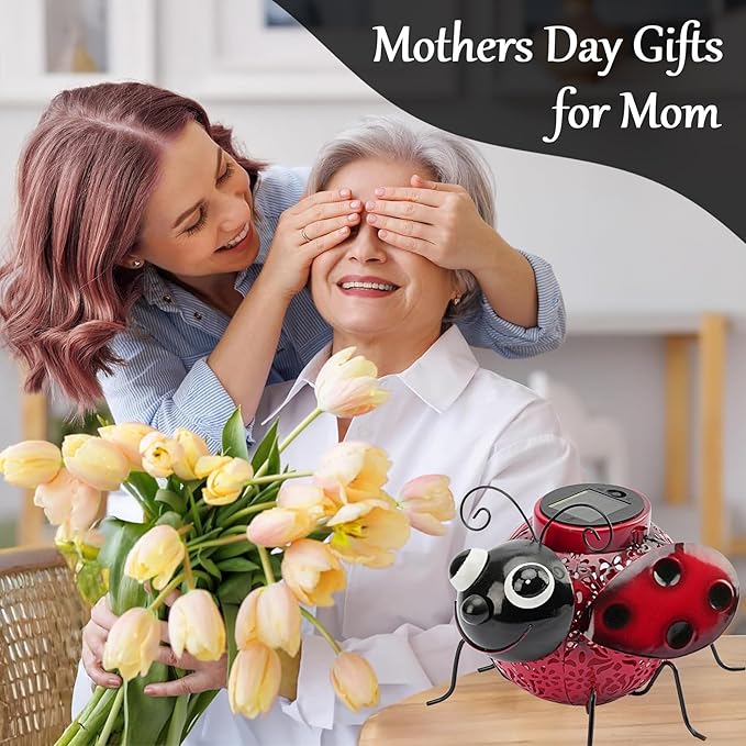 - 【PERFECT GIFT IDEAS】Garden ladybug solar lantern ideals for patios, lawns, yard and borders.It's a great gift for garden lovers, suitable for family, friends, teachers, classmates. Perfect for Mother's Day, birthdays, Father's Day, Christmas, or other special events.