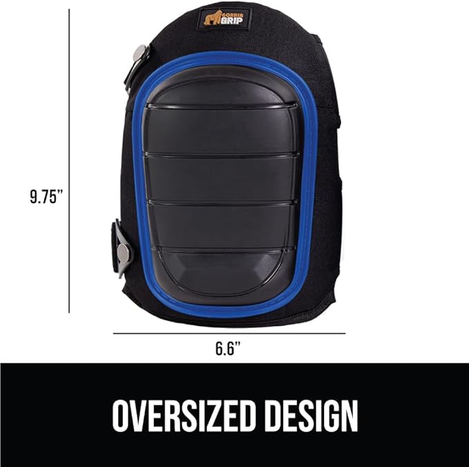 - OVERSIZED DESIGN FOR TOUGH JOBS: pads are designed with an extra large surface area that provides ample coverage and protection; each pad measures 9.75 x 6.6 x 3.1 inches; straps measure 14 x 3.25 inches; right and left pads are clearly marked for easy use; knee pad can withstand up to 1100 pounds