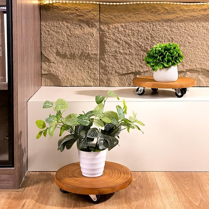 - Extra Thick Flower Caddy--The solid wood panel of the plant caddy with a thickness of 0.9 inches, ensures enhanced durability and stability, minimizing the risk of cracking. It can support a maximum load of 180lbs.