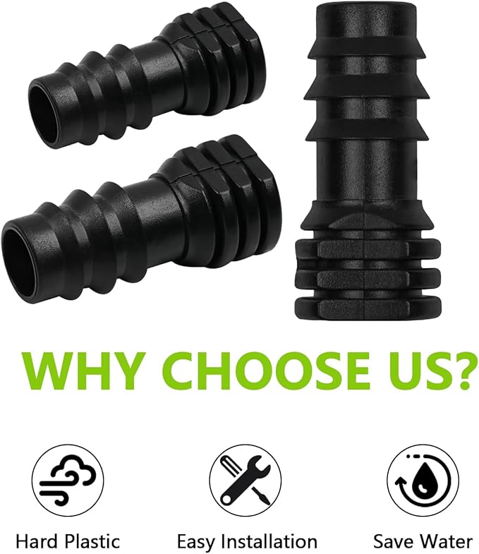 - 【Fits 1/2 Inch Drip Irrigation Tubing】These barbed drip line end plug connectors fit most 1/2 inches drip irrigation tubing with an inner diameter of 1/2 inch or 13 mm.
