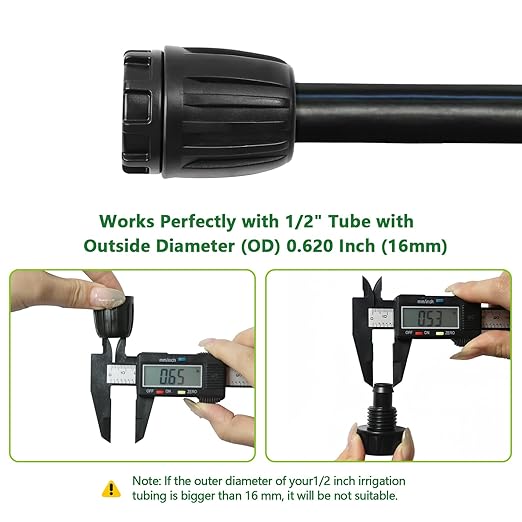 - 【Fits 1/2 Inch Drip Irrigation Tubing】These barbed drip line end plug connectors fit most 1/2 inches drip irrigation tubing with an inner diameter of 1/2 inch or 13 mm.