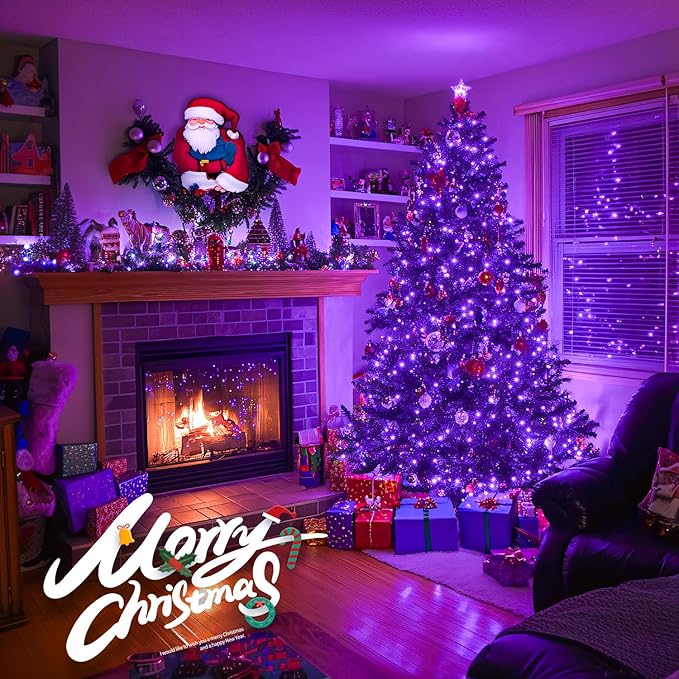 - Purple Christmas lights includes 400LED 132feet, extension cord length 9.8feet, which are long enough to hang them from trees, drape them along fences, or weave them through shrubbery, use purple lights to create a mysterious atmosphere and add to the Christmas festive atmosphere