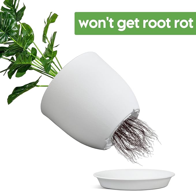- [ STURDY PLASTIC LIGHTWEIGHT ] -Plastic plant pots are made by 5mm PP materials. It’s lightweight, durable, sturdy plastic with a matte exterior finish for a clean modern look.