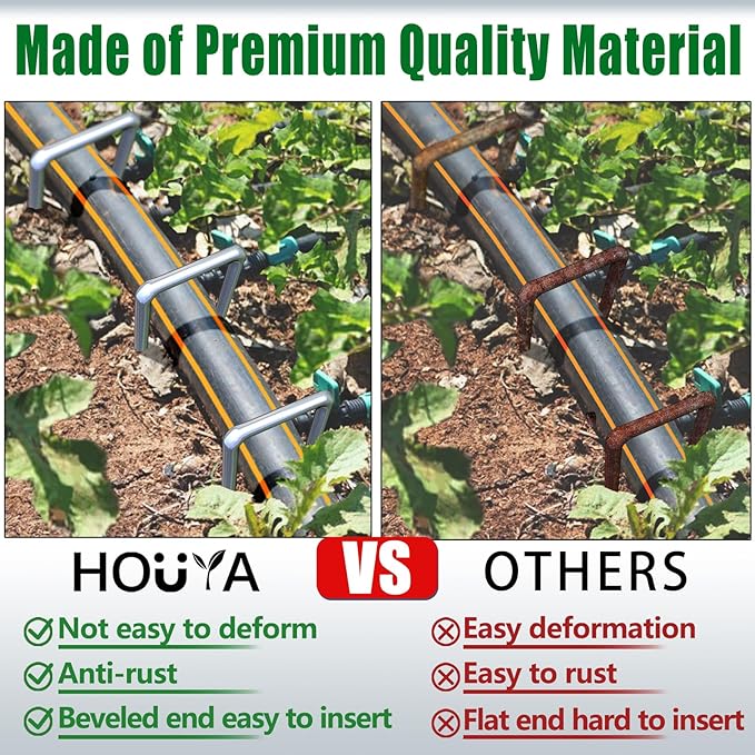 - 【Wide Application】 Perfect for gardening and outdoor use, these landscape pins securely hold garden hoses, turf, tents, irrigation tubing, weed barriers, landscape edging, vegetable bulbs, and more. Keep your garden organized and tidy with ease!
