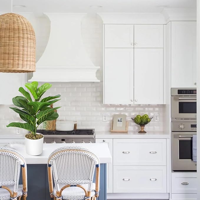 - Artificial Fig Tree - Nice realistic fig tree and high quality artificial trees, this fake fiddle tree leaves have real texture. Tabletop plants looks very real in appearance, perfect indoor fake planta tree decor for your office desk, Living room, picture window, home entranceway, bedroom. All year around keep greenery.