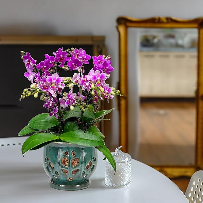 - Beautiful Glazed Finish: Our orchid planter features a beautiful glazed finish that adds a touch of elegance to any space and makes it a stylish addition to your home decor.