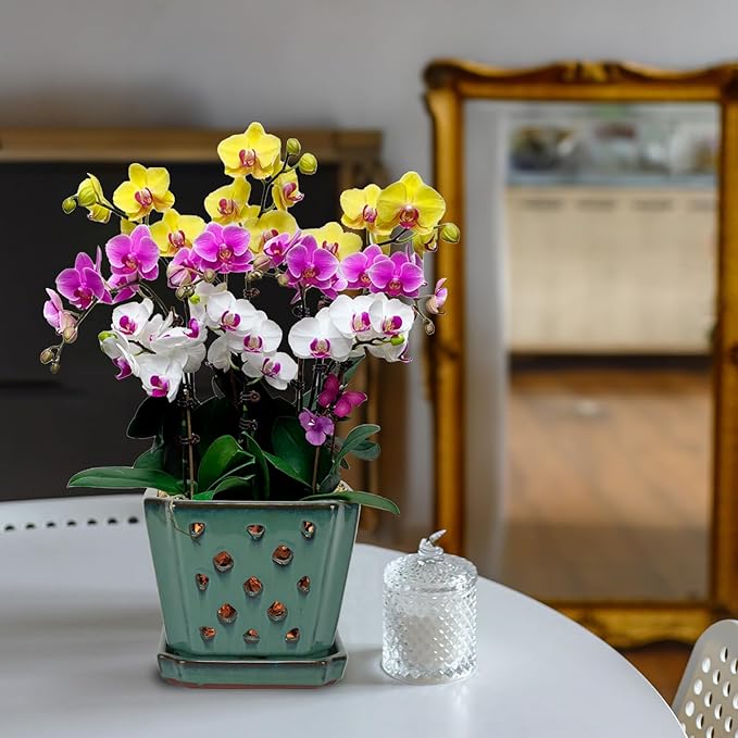- Beautiful Glazed Finish: Our orchid planter features a beautiful glazed finish that adds a touch of elegance to any space and makes it a stylish addition to your home decor.