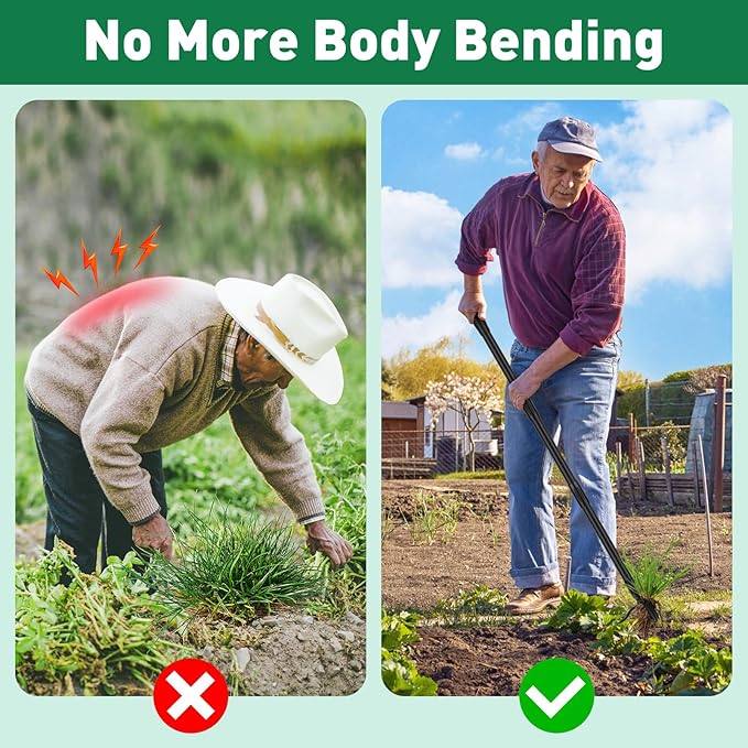 - 【Upgraded 4 Claws to Pull Deep Weeds】2.5 inch heavy duty 4-Claw iron head can insert into much deeper soil, providing stronger grip and firmly grasping weeds and roots. Whether dealing with strong roots or tight soil, this yard weeding tool is up to the task. Perfect for backyard,garden and front yard landscaping, it is an amazing tool for easy weed removal. Note: may have limited performance on hard clay or rock surfaces