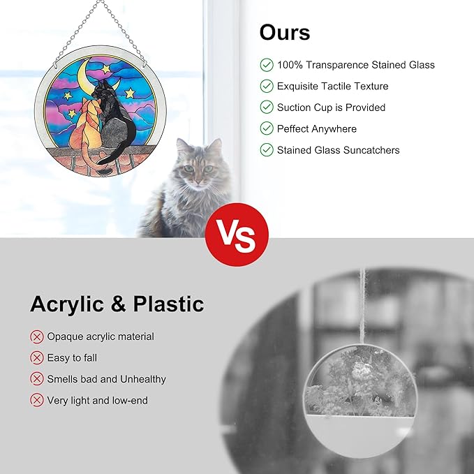 - 【Elegant Decor】Our Sun Catcher Glass features intricately designed cat and dog patterns that add a touch of elegance and charm to any room. The beautiful designs catch the light, creating a warm and inviting atmosphere.