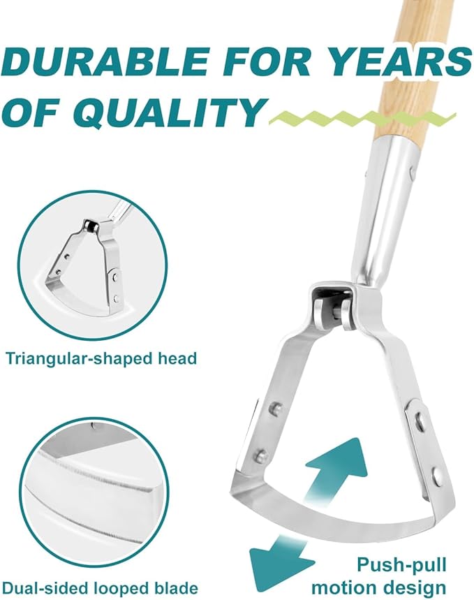 - DURABLY BUILT FOR LONG LIFE - This wood handle digging action/hula hoe is hand-forged from stainless steel and fitted with ash hardwood handle for long lasting sharpness and durability. Meticulously tested for reliability and performance, this heavy-duty scuffle hoe features a high-endurance.