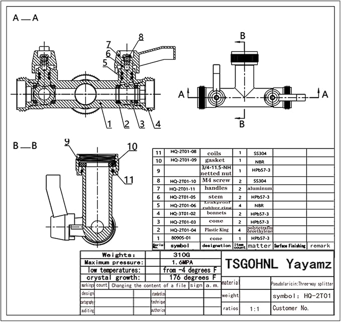 - 1: It is made of high quality brass, heavy-duty, rugged brass construction ensures that it is durable and will remain intact from -4 degrees F to 176 degrees F. It has a maximum working pressure of 1.6 MPA and weighs 0.68 lbs.
