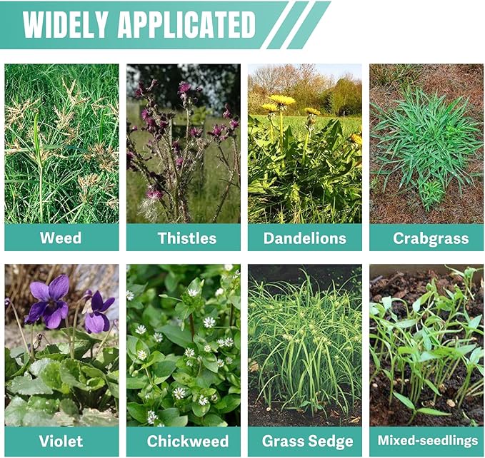 - 【Wide Application Weeder】:Our stand up weeder tool for garden is versatile and works effectively on a wide range of plants, such as weeds, thistles, dandelions, crabgrass, violets, chickweed, grass sedge, mixed seedlings, and more. Its robust prongs allow for use on tough soil without worry about bending or breakage. This weeding tools gardening long handle is an amazing gardening tool for mom, elderly or other family members.