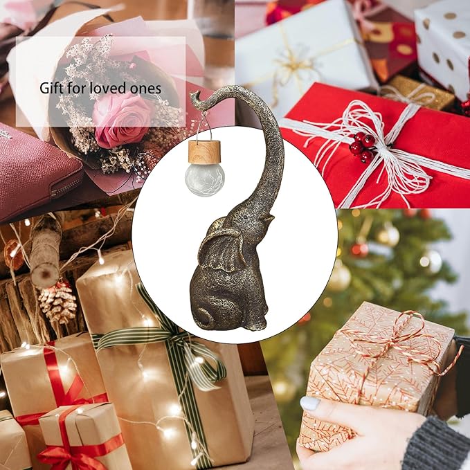 - Garden decor: This elephant sculpture lamp with glass ball lights exquisitely crafted,making it a birthday present that can bring good luck to your parents,family,or friends