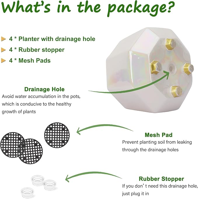 - Planters for indoor plants - Comes with a drainage hole, mesh pad and rubber stopper for easy plant care