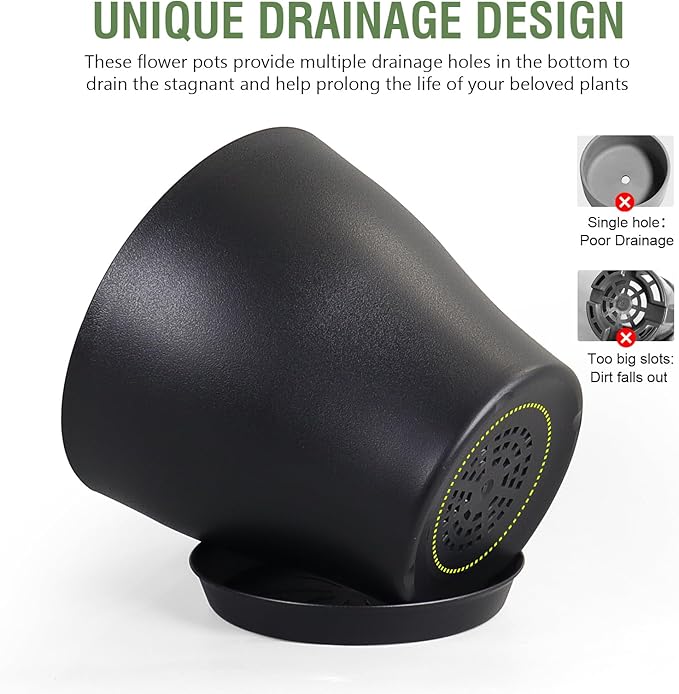 - 【Lightweight and Durable】Crafted from high-quality plastic, these flower pots are both lightweight and incredibly durable. They are designed to withstand everyday wear and tear, making them a reliable choice that won’t easily break or crack, even with regular use.