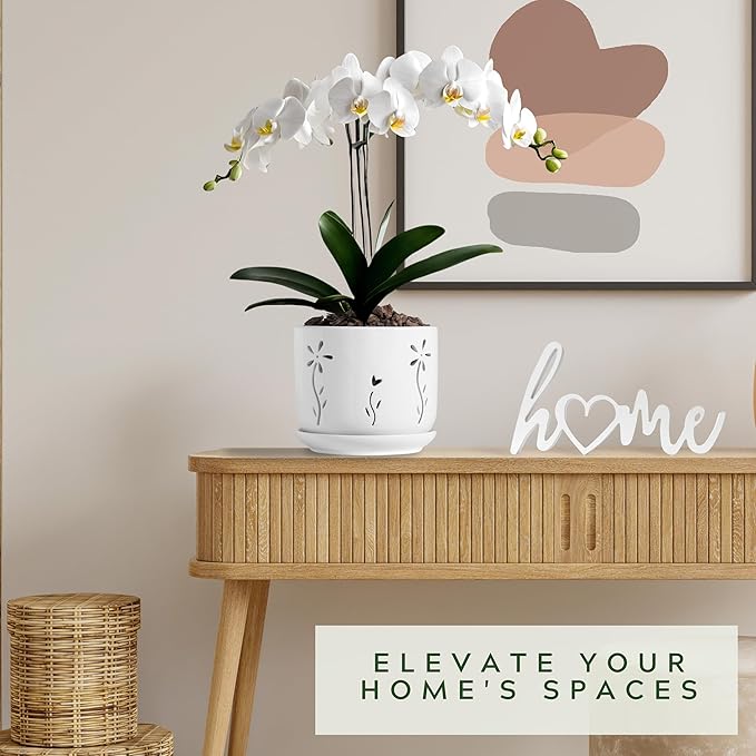 - 🪴VERSATILE AND DURABLE: Crafted from premium ceramic, these orchid pots are sturdy and durable, designed to last. Their clean white finish blends seamlessly with any decor, making them versatile orchid planters for indoor plants, adding elegance to any room or garden.