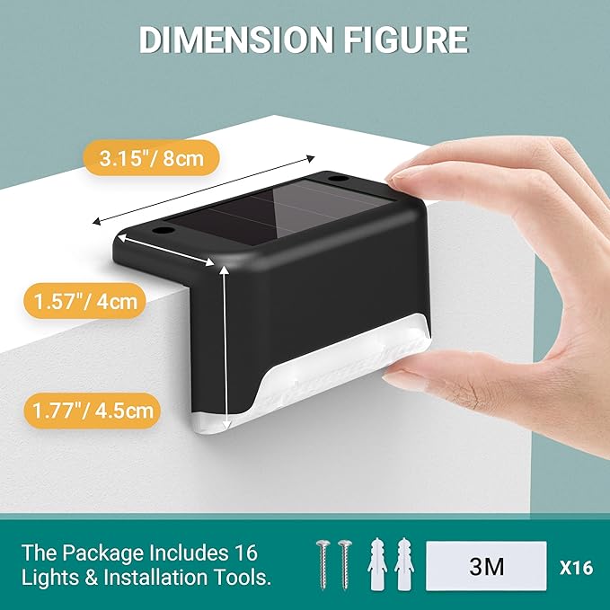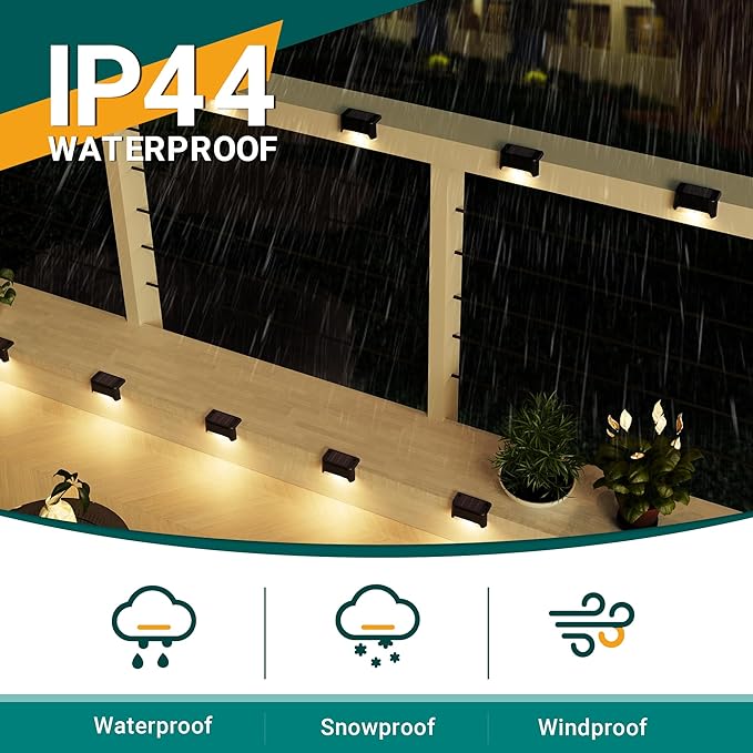 - 【Waterproof and Warranty】With hard ABS shell and high quality solar panel, the solar deck light is designed to withstand rain, wind, or small snowy days. What’s more, in any case you have problem, just contact us, we will help you solve the problem as soon as possible.