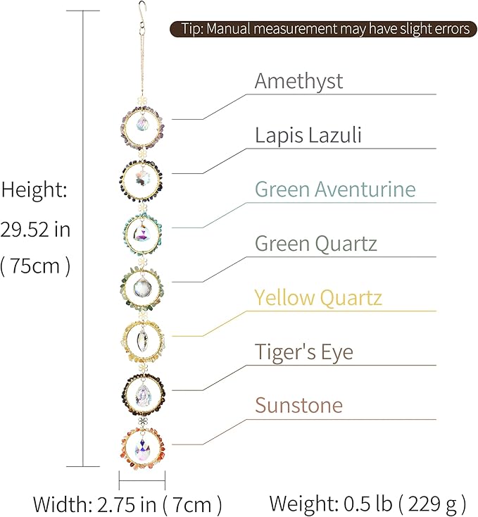 Healing Crystal Energy Wind Chime, 7 Chakra Crystal Sunlight Catcher, Meditation Home Decoration, Gem Wall Decoration, Birthday Gift, Healing Crystal Energy Sunlight Catcher