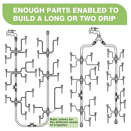 - Enhanced Tubing Design: Our main tubing has been upgraded to withstand higher water pressure, ensuring durability and reliability. With a generous 40FT length, which can be easily divided into two main tubes, and two faucet connectors included, setting up multiple drip irrigation systems is a breeze.