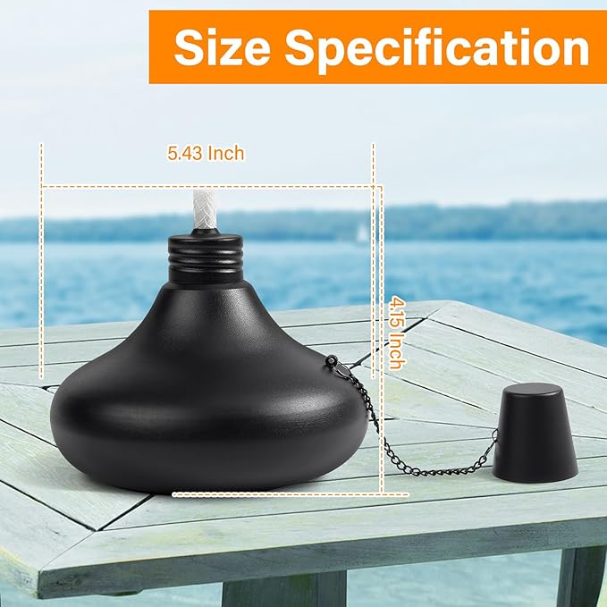 - 💝Large Capacity: Each tabletop torches hold approximately 24 oz of fuel, allowing the burning time more than 10 hours. Recommended using a funnel when filling torches with oil. It is easily available in the market. Please use snuffer to put out flame and protect the wick after use.(Note: These torches do not contain fuel)
