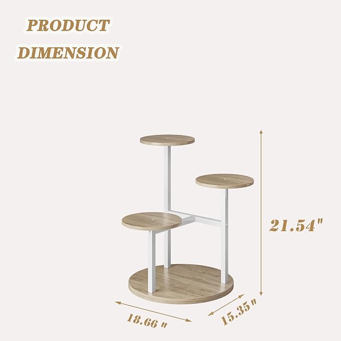 Plant Stand Indoor 4 Tier 5 Potted Multiple Flower Pot Holder for Patio Garden Balcony Living Room Corner (4 Tier White+Sonoma Oa)