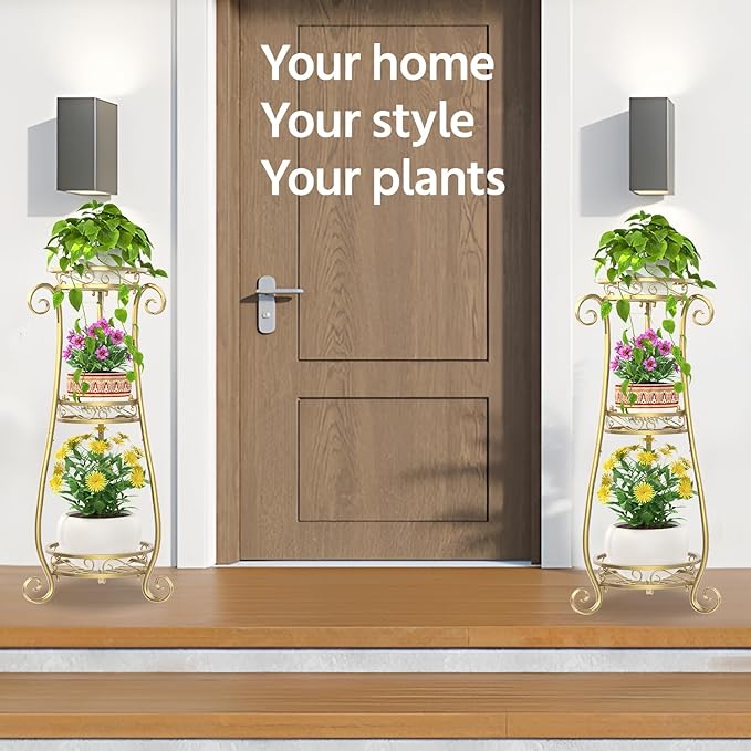 - 【Elegant Home Decor】Our flower stands for indoor plants features graceful curves and vintage wrought iron patterns, adding charm to any room. It’s available in 3 versatile colors, making it the perfect centerpiece for your entryway, impressing guests and reflecting your taste.