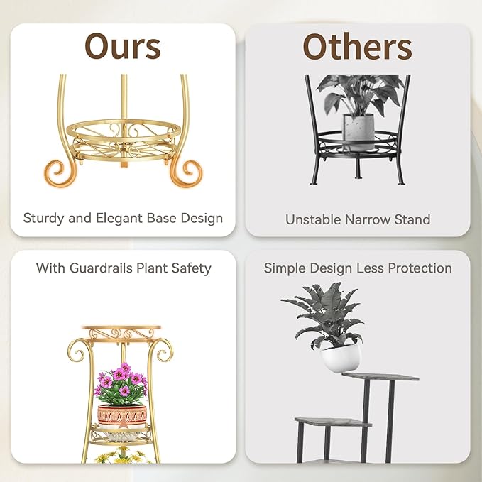 - 【Maximize Space Effortlessly】 Struggling with limited space? This 3 tier metal plant stand maximizes every inch of your living room, balcony, or narrow corner. Enjoy a clutter-free, organized space without sacrificing your love for plants.