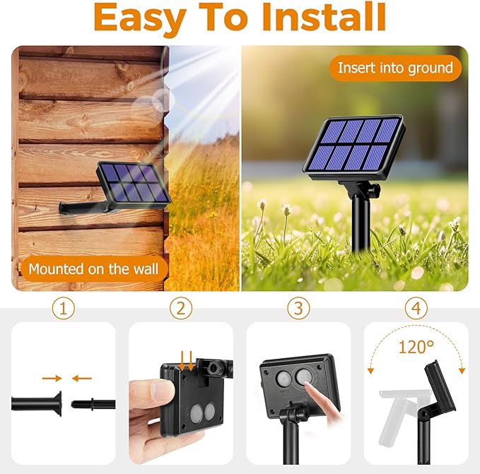 - 4 Packs Solar String Lights for Outside: Each Ultra-Bright twinkle lights solar with 80 LED 33 FT (26.5 ft light string +6.5 ft lead wire), total 320 LED 132 FT. Enough length and lights to increase the decorative range, meet your different embellish needs