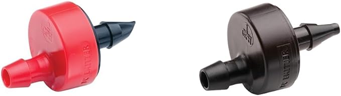 - Includes 10 red 2.0 GPH emitters and 10 black 1.0 GPH emitters.