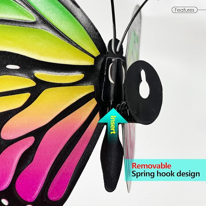 - REALISTIC 3D EFFECT - you can fold the wings of the butterfly to stand up, so that the butterfly looks more realistic, and the spring hook design can make the butterfly dance in the wind, It looks more real.
