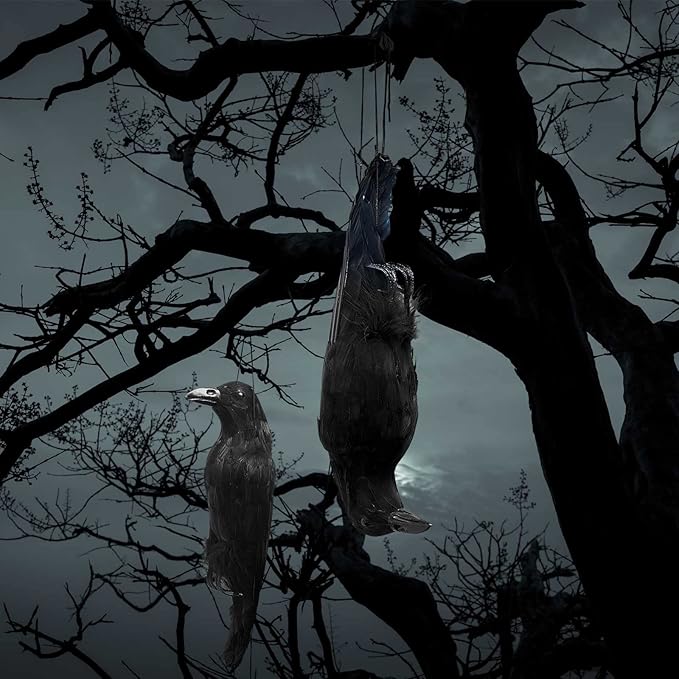 - Package Contents: our fake dead crow set includes 1 piece of fake black crows, which look like the real thing and set off a scary atmosphere; If you are looking for the right Halloween decoration, it will be worth your choice; They help you create a creepy atmosphere for your home this Halloween season