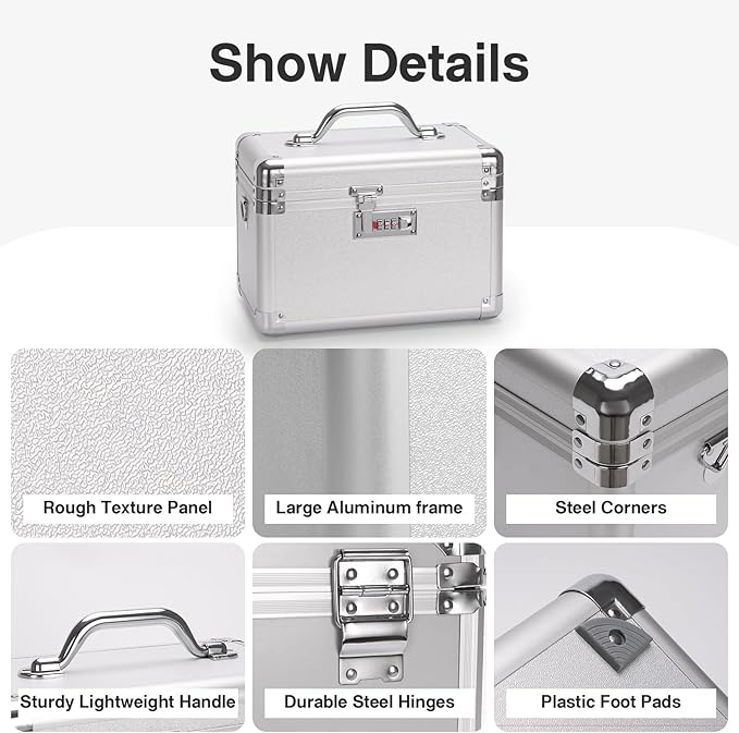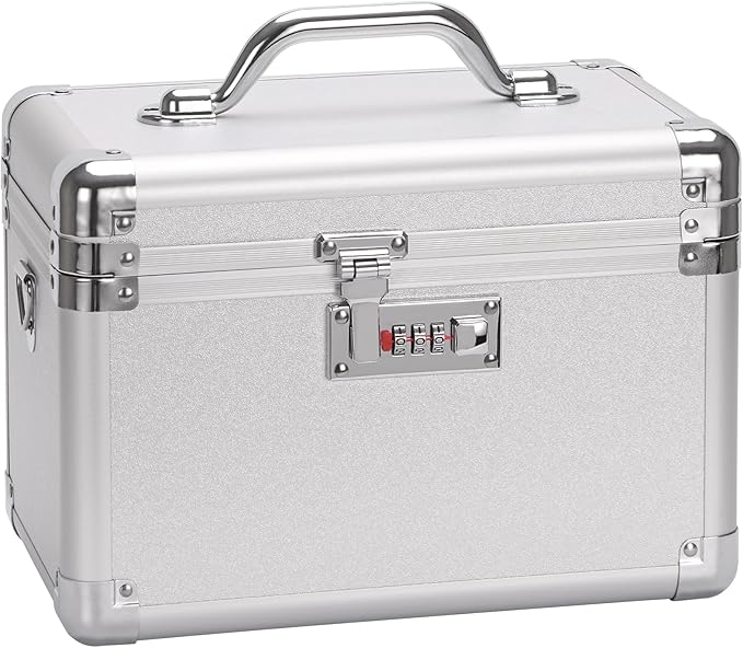 - Spacious Interior for Essentials: Measuring 11.2x7.4x6.8 inches, this storage case with lock provides space for personal items while keeping your office organized. Its sleek silver design fits seamlessly into any room, securing essentials out of sight