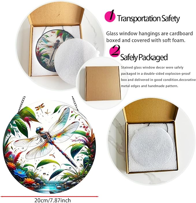 - Effortless Hanging : Bringing this artistic dragonfly into your home is a breeze. Each stained glass window suncatcher comes complete with a metal chain, making installation a seamless process. Display it as a focal point in your living space, and enjoy the mesmerizing shadows and vibrant colors it casts.