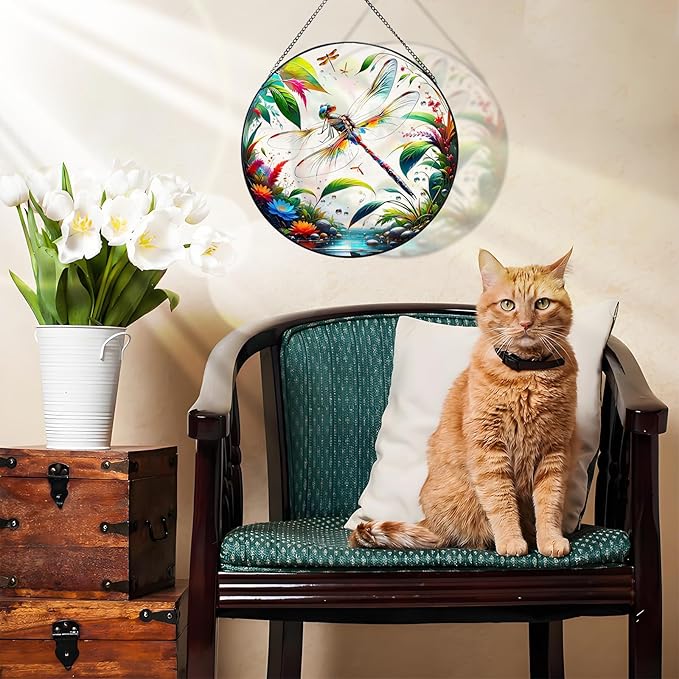 - Multifunctional Artistry for Any Space: The Colored Stained Glass Dragonfly is a versatile masterpiece that serves multiple purposes. Whether you're decorating windows, cars, walls, patios, gardens, or living rooms, this stained glass suncatcher adds an unparalleled elegance to any environment. Its compact design and vibrant colors make it an ideal choice for suncatchers for windows hanging, enhancing the aesthetic appeal of your space and bringing a touch of nature indoors