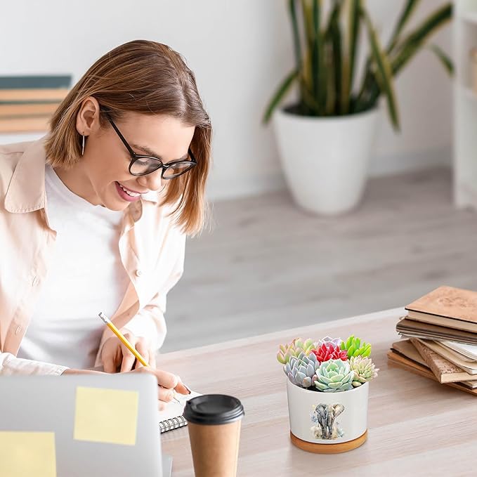 - Included Bamboo Trays Ensures Cleanliness: each elephant flower pot is paired with a bamboo tray, making it convenient to contain any excess water and maintain cleanliness; The trays' natural bamboo design blends seamlessly with the ceramic pots, creating a harmonious spectacle for your indoor or outdoor setting
