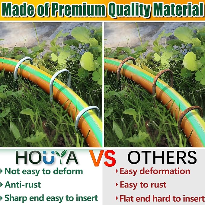 - 【Multi Purpose】The metal landscaping stakes are geat for fixing drip irrigation tubing hose, chicken wire, outdoor decoration, landscape fabric, plant cages, dog fence and so on.