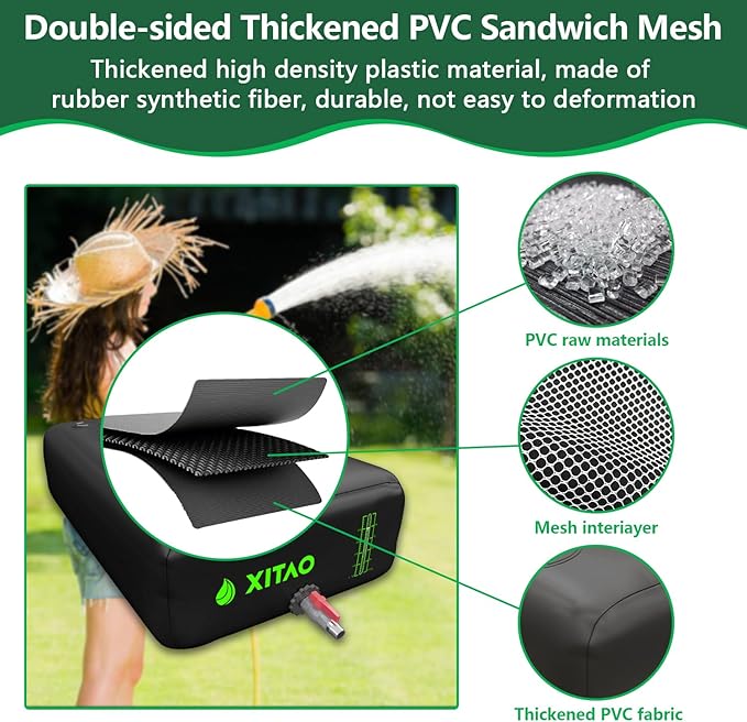 - 【Excellent Sealing】Our water storage bladder seams use high-temperature welding technology to withstand tremendous pressure without leaking. This improves the service life of the water bladder. Attached repair patches, when the water bladder is punctured by hard objects, the patches can easily repair the water bladder. Its reusable, simple frame assembly allows you to use it whenever you need our water barrel again.