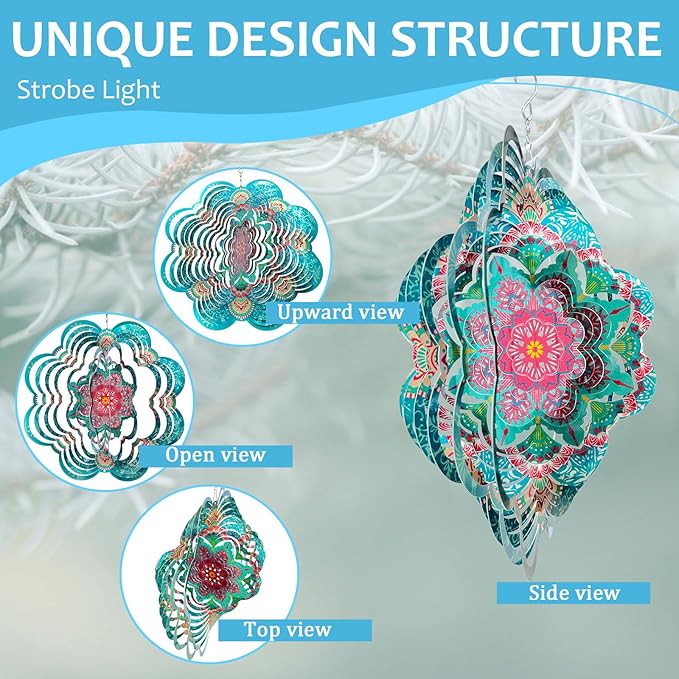 - ღ【Durable Yard Garden Decor】Our hanging wind spinner are made of durable stainless steel by laser-cutting technology to form vivid shape,it delivers a wave of mesmerizing patterns that will surely delight any spectator.Individually hand painted epoxy protective coating with colored glitter inside,has better outdoor weather resistance,not easy to rust. Beautiful patterns that sparkle & won’t fade in the sun.