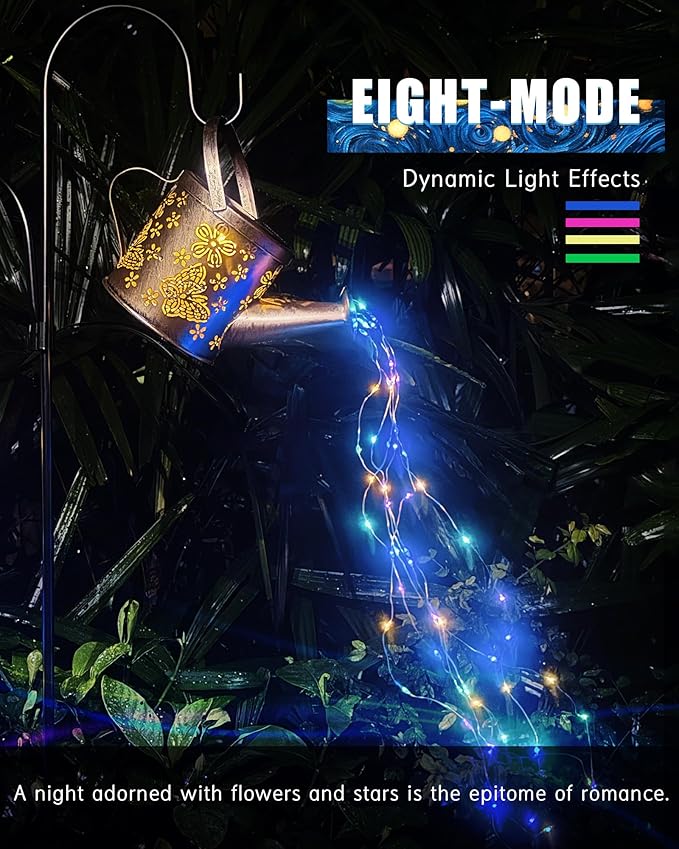 - Upgraded Colorful Solar Watering Can: Elevate your outdoor ambiance with our multicolored Frog-shaped hanging solar lantern featuring 8 light modes and 4 color LED strings, casting a starry glow as if pouring out a constellation. The warm yellow light filters through the exquisite cut-out design, creating a cozy and artistic atmosphere for memorable nights with family and friends