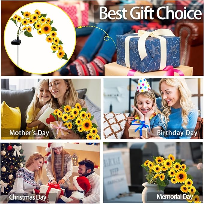 - Garden Decorations & Unique Gift: Solar sunflower lights can enhance the beauty of your garden, lawn or patio. Their unique design and warm glow create a charming atmosphere, ideal for outdoor decorations and evening Fall decor. In addition, they are a unique garden gift, perfect for women who love gardening