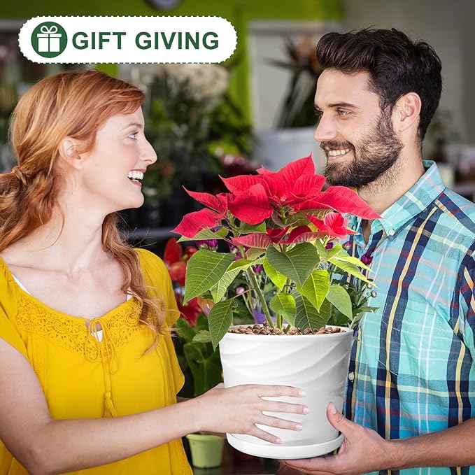 - 【8" Large Flower Pot 】Ceramic planter 8.3" diameter, 7.5" height, suitable for growing your favorite plants in the living room, balcony, yard, such as snake plants, green plants, orchids, etc.