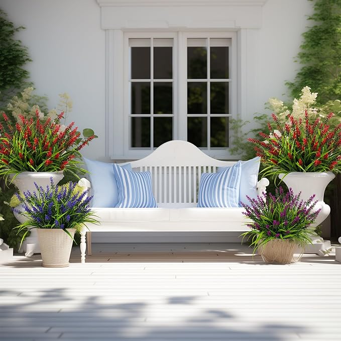 - [Designed for Outdoors] Outdoor artificial flower plants versatile decorations, whether you want to enhance your garden, porch, window box, or even use them as a wedding or farmhouse decoration, these artificial flowers can be easily arranged and provide an amazing focus, the perfect decoration for both interior and exterior.
