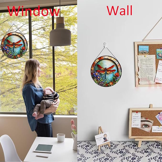 - 【Premium Material】Window hanging is made with high-end stained glass,unique handmade decoration,the dragonfly pattern is exquisite and beautiful,it is a unique presence in the ornament.