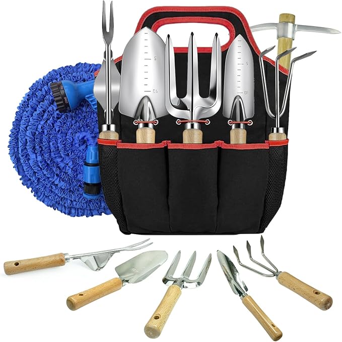 - 【26-Piece Garden Tools Set】This garden tool set includes heavy-duty stainless steel gardening tools, a succulent tool set, a stylish and durable storage handbag, a 295-inch flexible magic expandable garden hose pipe, stainless steel ice pickaxe,which can meet all your gardening needs, making you love gardening more and enjoy garden life more