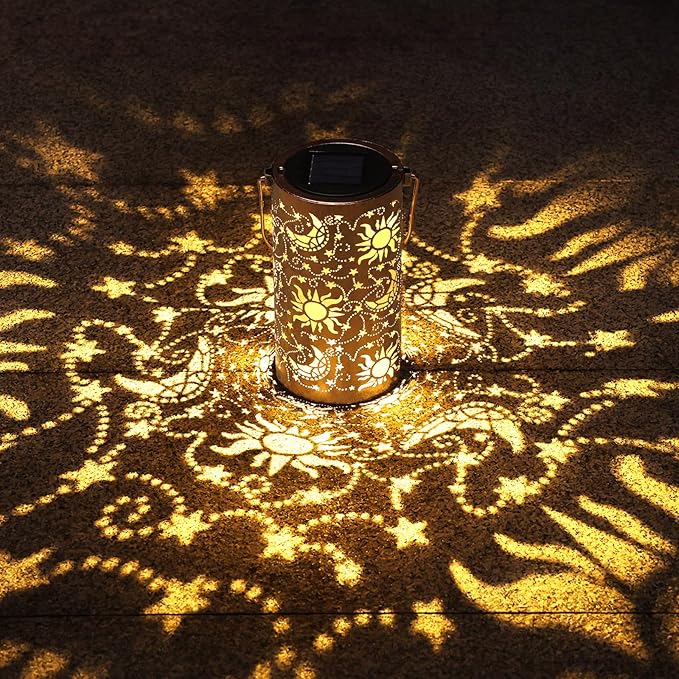 Fabuday Sun Moon Outdoor Solar Lantern Waterproof - Hanging Solar Power Lights Led for Outside, Garden Decor for Patio, Porch, Balcony, Yard and Deck, Stars Decorations Gifts for Women Mom