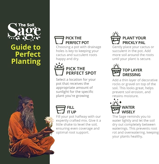 Soil Sage Cactus Soil 5Qt Premium High-Drainage Cactus & Succulent Potting Mix with Mycorrhizae Fungi - Meticulously Mixed by Hand, Ready to Use - Made in U.S.A.