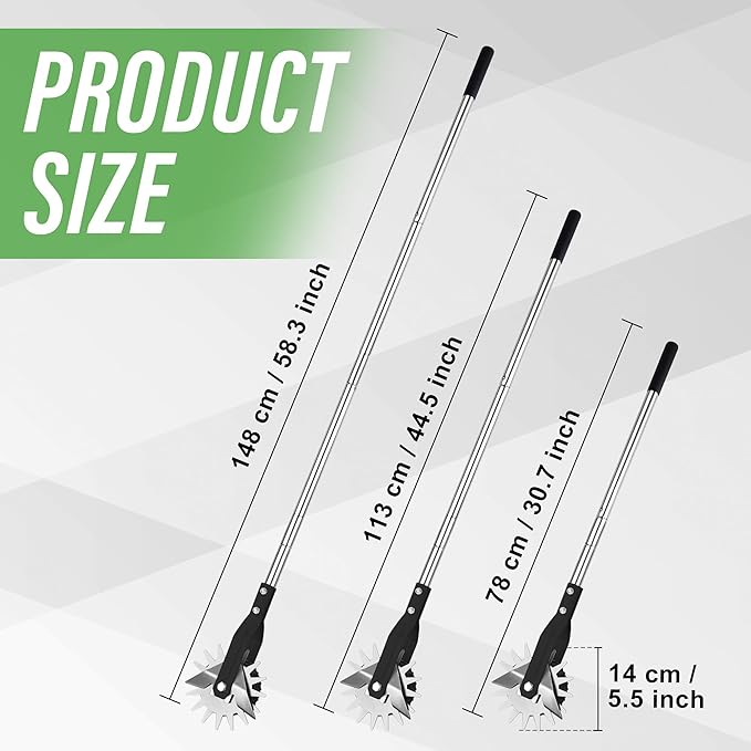 - 【Adjustable Design】: The handle of the lawn edger has an adjustable rod design, and the length can be adjusted according to the height of the lawn and the trimming needs or according to your height and preferences to achieve the ideal trimming effect. Grass trimmer can be set to three different lengths of 58.3/44.5/30.7 in to provide you with a personalized operating experience.