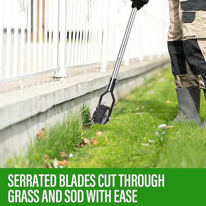 - 【Efficient Trimming】: Our sawtooth wheel of the trimmer edger lawn tool rotates when pushed forward, gathering the grass you need to trim together and cutting it off easily. Combined with the adjustable handle length and wheeled design, this lawn edger tool can not only easily trim the edge of the lawn, but also move easily, making work more efficient.